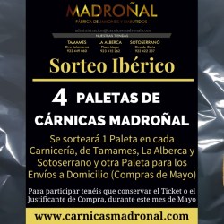 Desde Cárnicas Madroñal sorteamos CUATRO fabulosas PALETAS de CÁRNICAS MADROÑAL, entre nuestros clientes, por sus compras realizadas en Mayo. Se sorteará 1 Paleta…